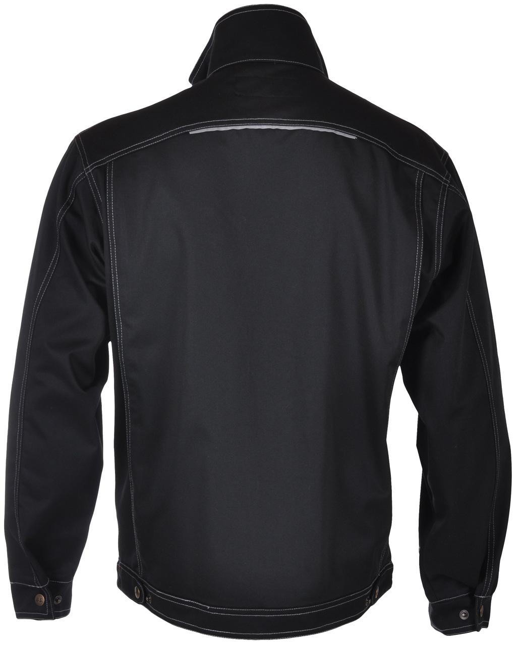 Håndverksjakke med to brystlommer og to stikklommer med glidelås. Glidelås med klaff i front.