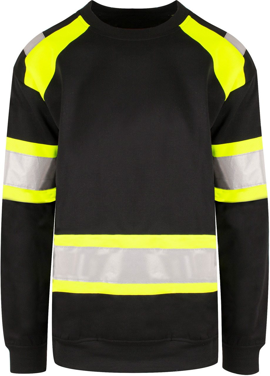 Unisex genser med påsydde reflekser og fluoriserende farge i kontrastfelt.