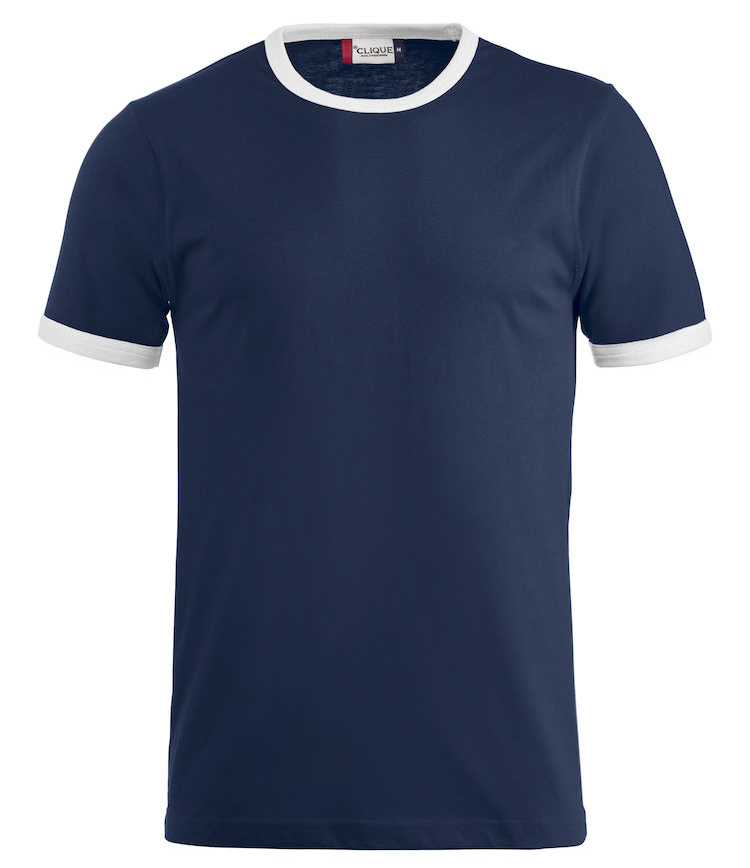 Moderne T-shirt med noe smalere passform, kontrastfarge i hals og armer. Bånd i krage med elastan.
